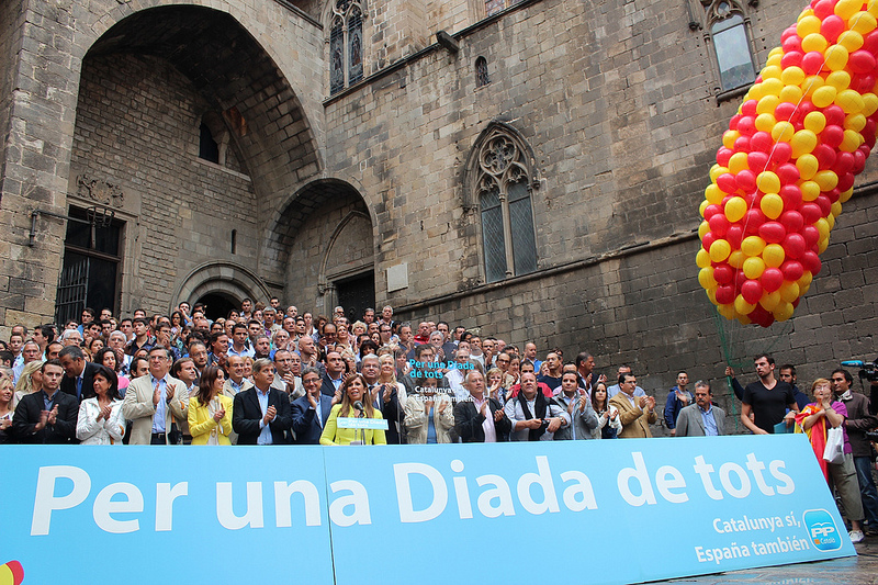 Avui, 11 de setembre, ens situem en el present encarant un futur d’optimisme, en la història real de com sortim junts de la crisi transformant allò que no ha funcionat. Construir i no destruir, en una Espanya i una Catalunya de tots. I ho diem clar i orgullosos. No ho diem a mitges. Nosaltres ho diem sense complexes perquè sentir-se català i espanyol són sentiments compatibles i no volem escollir només un i haver de rebutjar l’altre.